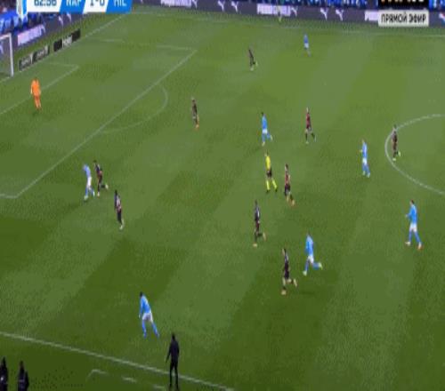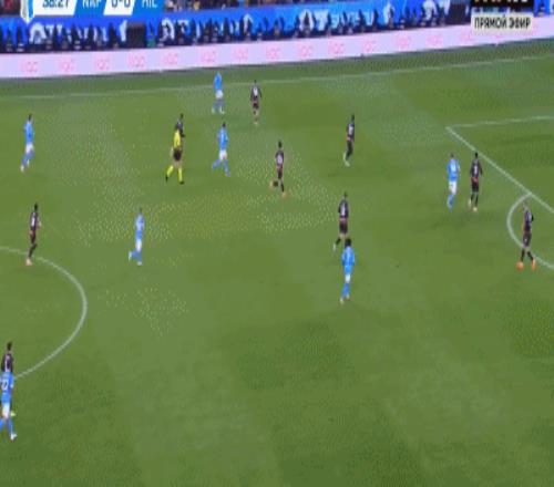 第22分鐘,邁尼昂撲救脫手,驚出紅黑軍團一身冷汗,好在埃爾馬斯的打門沒有命中目標,第37分鐘AC米蘭獲得反擊機會,薩勒馬科爾斯帶球推進到前場后,分給了無人盯防的恩昆庫,但后者的打門放了高射炮,逃過一劫的那不勒斯,在2分鐘之后打破場上平衡,邁尼昂左路下底傳中,造成邁尼昂脫手,內(nèi)雷斯補射建功,幫助那不勒斯取得了1-0的領先。
