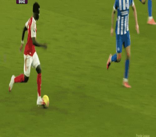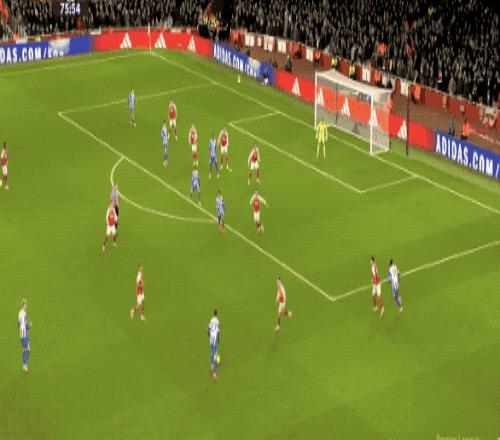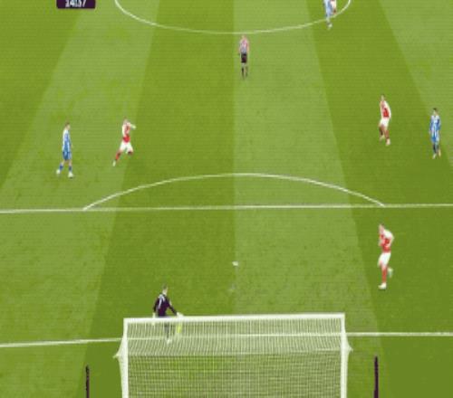 第14分鐘,布萊頓的傳球被搶斷,薩卡送出助攻,厄德高打近角得手,槍手早早取得領(lǐng)先。