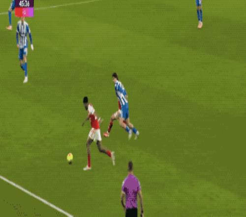 第30分鐘,因卡皮耶送出妙傳,薩卡停球不太舒服,但迅速調(diào)整后依舊強(qiáng)行進(jìn)入禁區(qū)傳球,防守球員將球解圍。