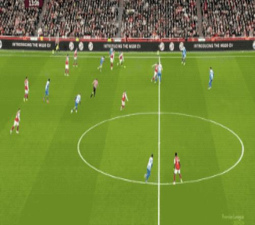 第85分鐘,薩卡及時傳中,馬丁內(nèi)利突然繞到前點,將球打飛。