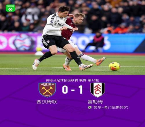 北京時(shí)間12月27日,英格蘭足球超級(jí)聯(lián)賽第18輪,西漢姆聯(lián)坐鎮(zhèn)主場(chǎng)迎戰(zhàn)富勒姆。比賽中,斯卡萊斯解圍踢空,哈里-威爾遜助攻勞爾-希門(mén)尼斯頭槌絕殺。憑借此球,富勒姆客場(chǎng)1比0戰(zhàn)勝西漢姆聯(lián)。