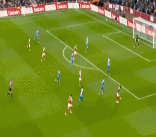 第93分鐘,馬丁內(nèi)利頭球擺渡,薩卡單刀殺入禁區(qū),不過最后的推射被對方后衛(wèi)封堵。