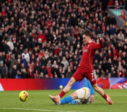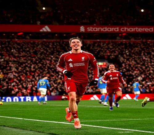 隨著主裁判一聲哨響,利物浦就在主場(chǎng)大舉壓上圍攻狼隊(duì),第8分鐘維爾茨右路帶球推進(jìn),隨后橫敲給了中路跟進(jìn)的麥卡利斯特,可惜后者沒(méi)有拿到皮球,2分鐘之后,維爾茨中場(chǎng)送出一腳妙傳,埃基蒂克禁區(qū)內(nèi)兜射遠(yuǎn)角,可惜運(yùn)氣不佳被門(mén)柱擋出,第28分鐘麥卡利斯特的勁射再次擊中門(mén)框。