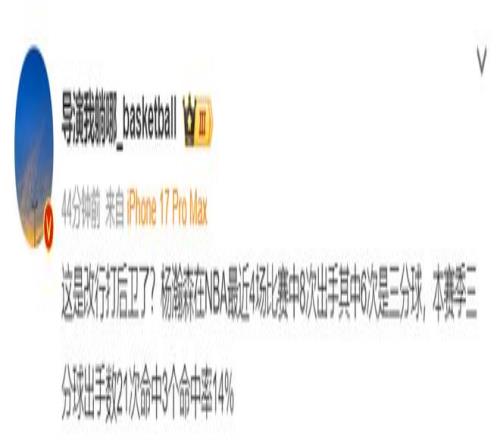 導(dǎo)演:楊瀚森這是改打后衛(wèi)了?過去的四場比賽10個出手有6個是三分球(也只命中兩個三分球,沒有任何一個兩分球命中),本賽季三分球出手21次命中3個,三分球命中率僅14.3%。