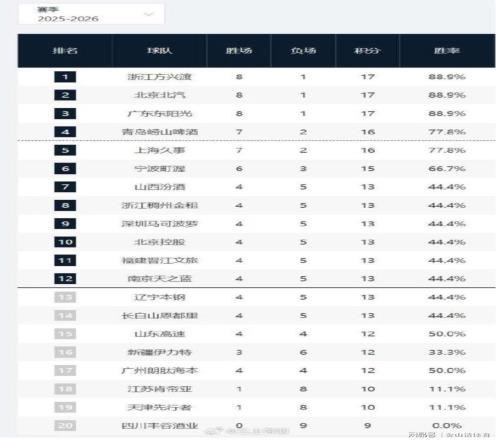 山西汾酒、浙江稠州金租、深圳馬可波羅、北京控股、福建晉江文旅、南京天之藍、遼寧本綱、以及吉林長白山恩都里。以上8支球隊,戰(zhàn)績均為4勝5負,分列積分榜第7至14位。
